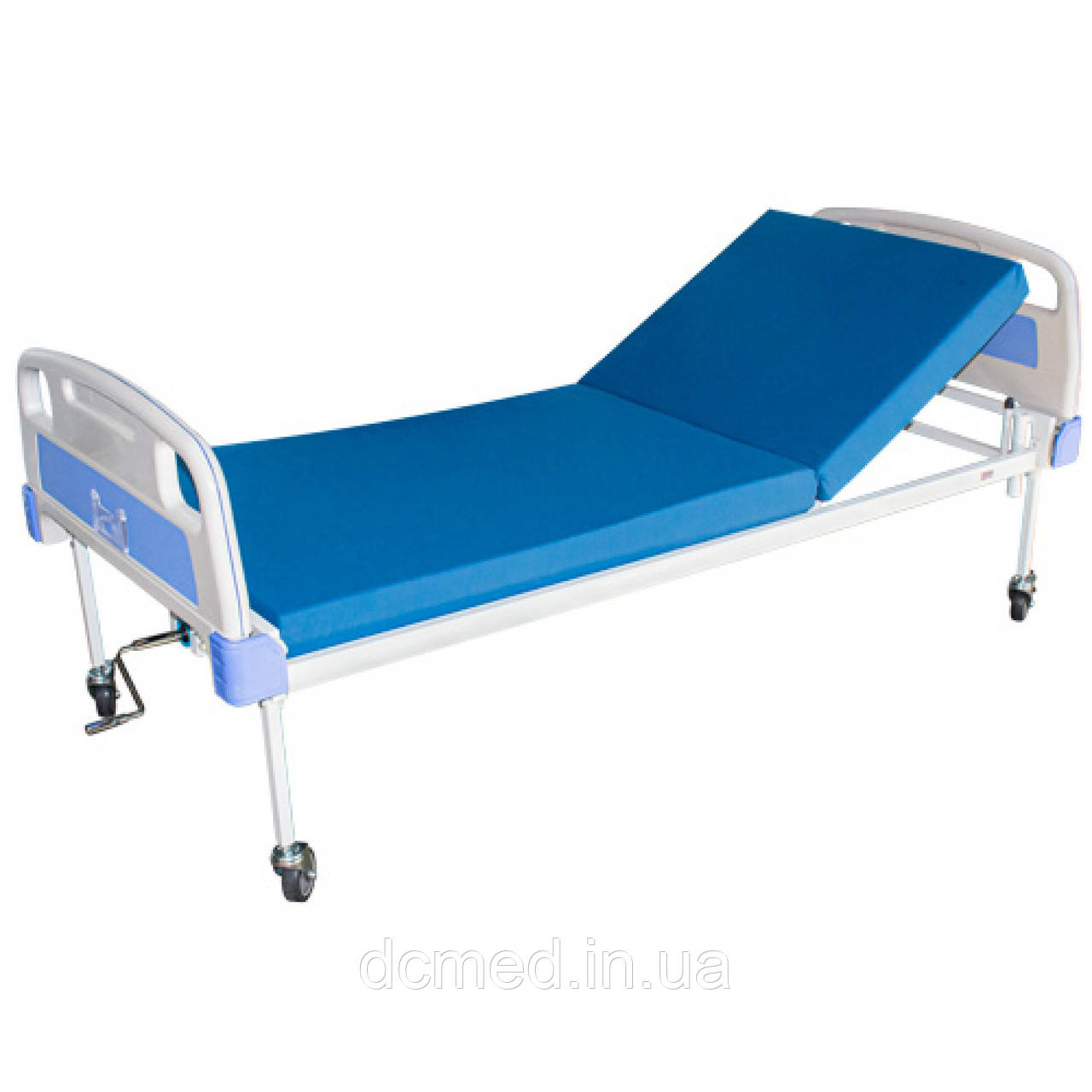 Знімні пластикові бильця виконані у біло-блакитному кольорі. Бильце біля головної сторони ліжка – вище, а бильце у ножної сторони має пластикову, прозору рамку для розміщення інформаційного листа пацієнта.