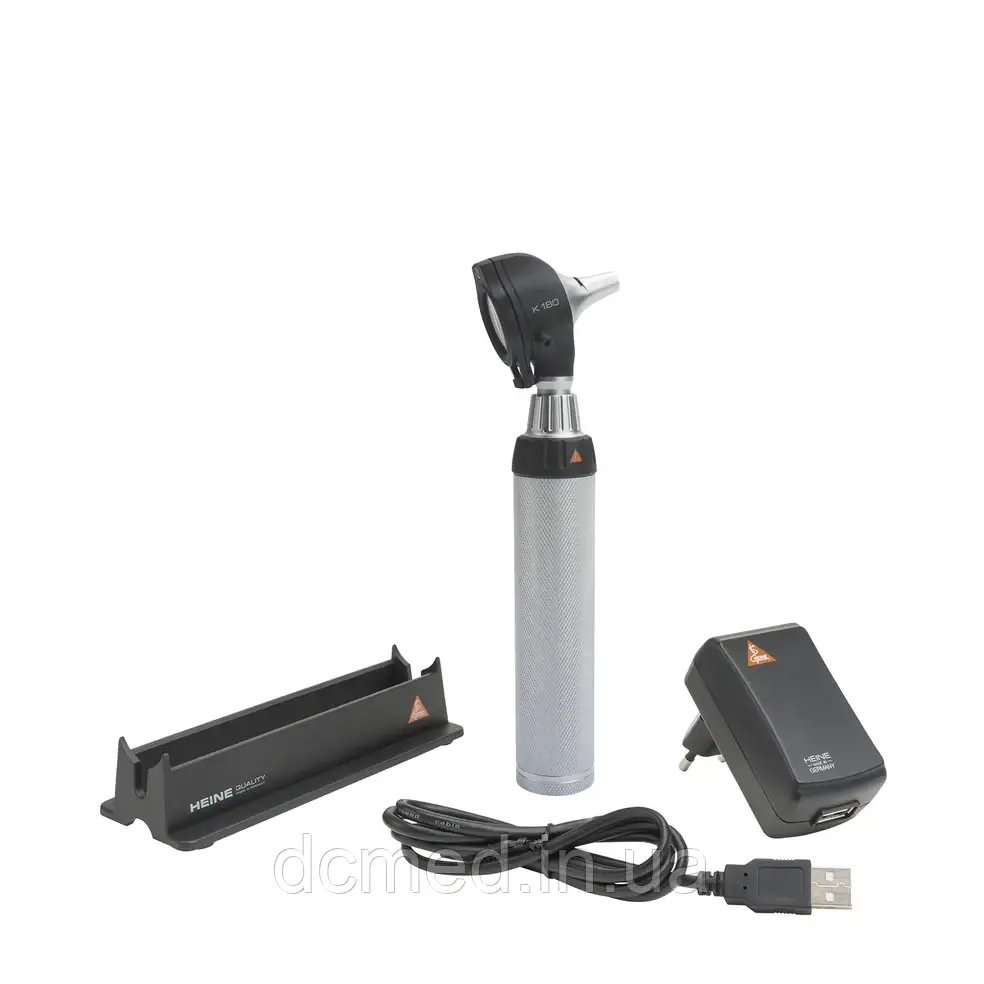 HEINE K180 – це отоскоп з фіброоптичним освітленням, виготовлений з міцного, ударостійкого полікарбонатного сплаву. Ксенон-галогенова лампа забезпечує яскраве біле світло на всій досліджуваній області.